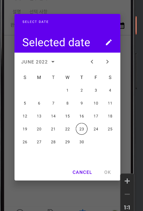 좀 멋있게해보려고 MaterialDatePicker를 적용해서 버튼을 누르면 달력이 뜨게 구현을 하려했다.