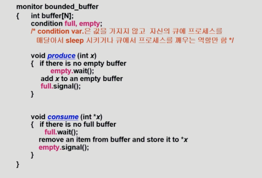 - 세마포어의 문제를 해결하기 위해 모니터를 사용