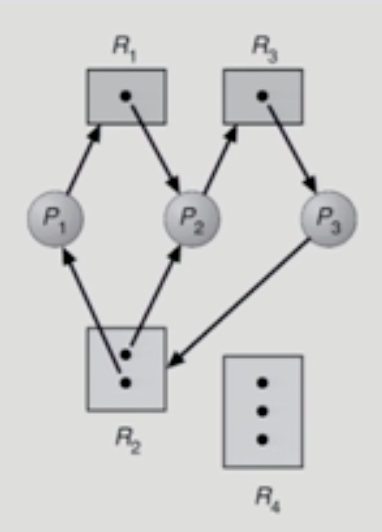 - 자원을 기다리는 프로세스 간에 사이클리 형성되어야 함