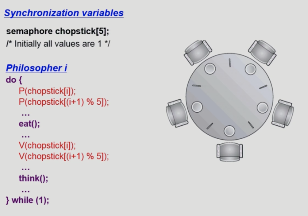 - 그리고 P()연산을 해서 권한을 확인 후 잠들거나 식사시작