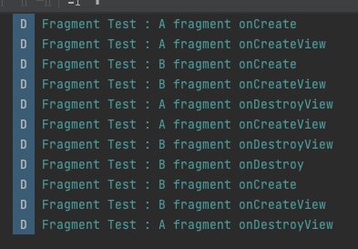 옆에 사진을 보면 A 프래그먼트의 onCreate은 맨 처음에 한 번만 있는 것을 확인할 수 있다.